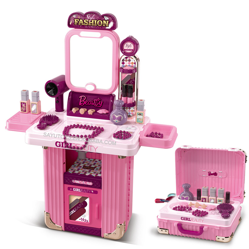 ست میز آرایش و زیبایی ۱۸ در ۱ شامل میز آرایش، ابزار مو، لوازم آرایش و اکسسوریها، مناسب دختران ۳ تا ۸ سال برای بازی و آموزش نقشآفرینی. سبک، ایمن و جذاب برای سرگرمیهای خلاقانه.