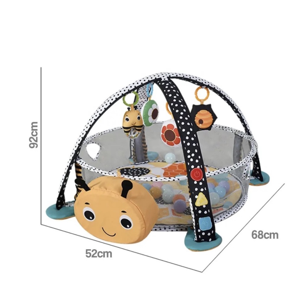 پارک بازی ۳ در ۱ کودک با موسیقی، چراغ و چهار اسباببازی آویزان، همراه با ۳۰ توپ رنگی؛ قابل تبدیل به تشک فعالیت و توپخانه برای سرگرمی و رشد کودکان بالای ۳ ماه.
