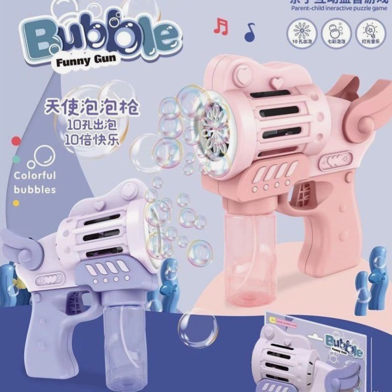 تفنگ حبابساز فرشته با طراحی ۱۰ سوراخه، موتور قوی و نورهای رنگی LED که هزاران حباب رنگی تولید میکند؛ مناسب بازی هیجانانگیز کودکان در فضای باز.