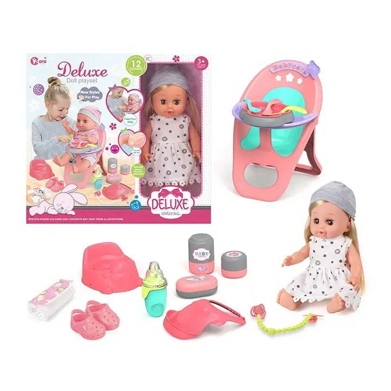 عروسک دخترانه با صندلی غذا: