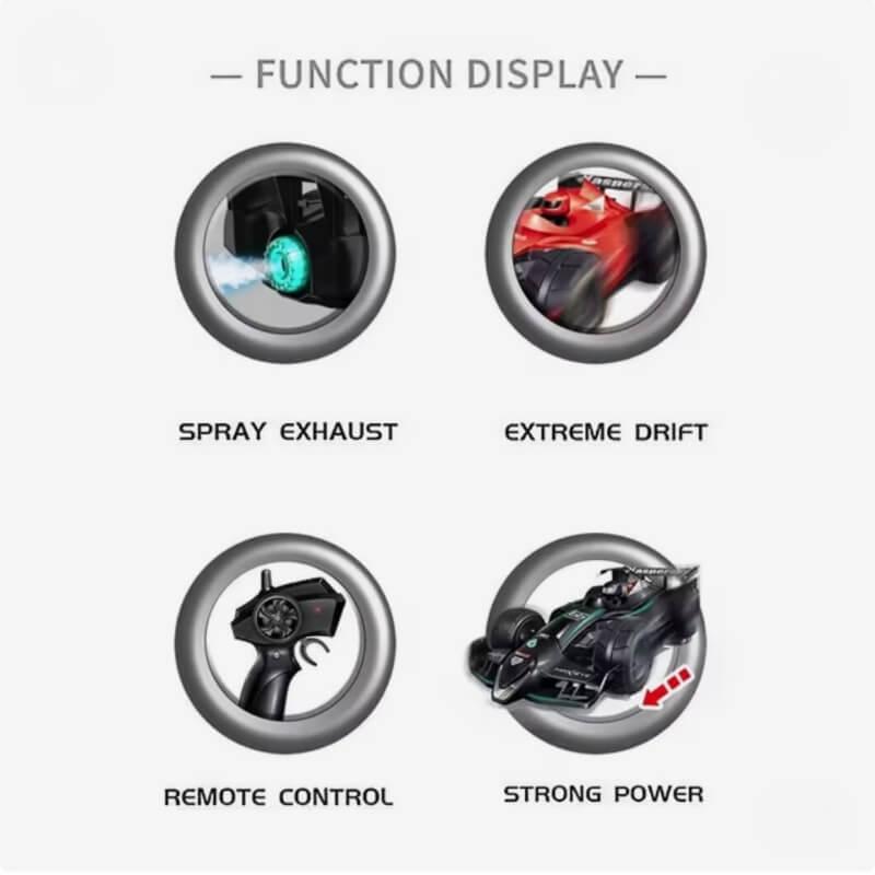 ماشین کنترلی فرمول یک با ۵ کانال حرکتی، کنترلر ۲.۴ گیگاهرتز، افکت نور و بخار از اگزوز و لاستیکهای ضد سایش؛ تجربه هیجانانگیز مسابقه برای کودکان.