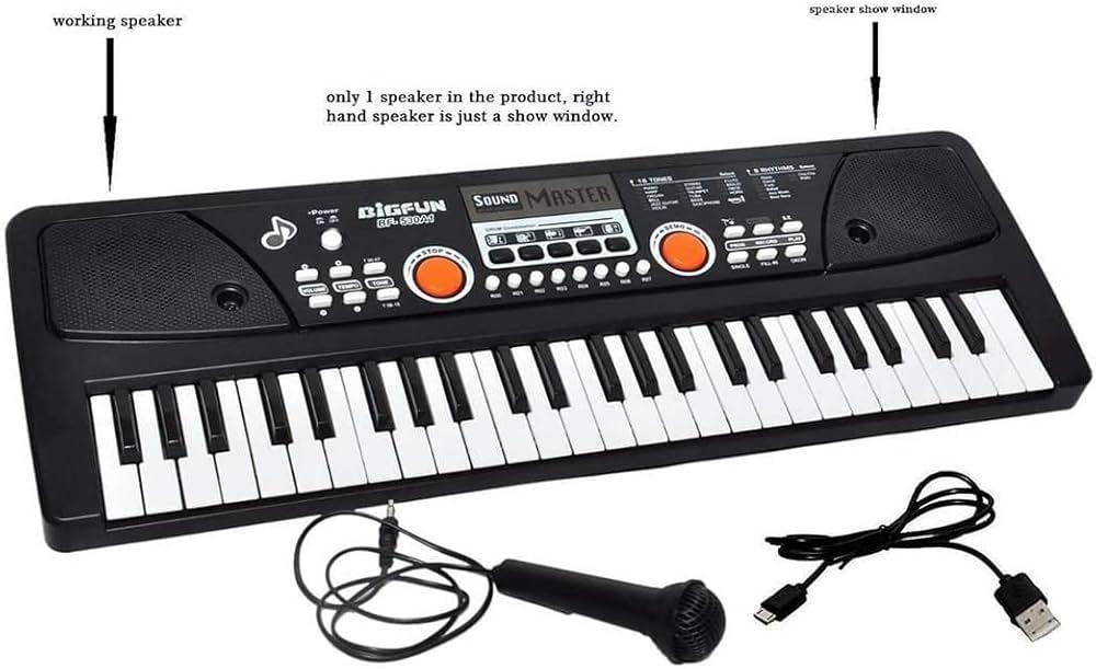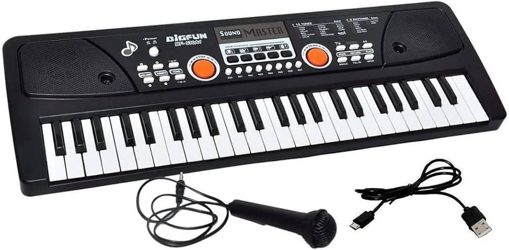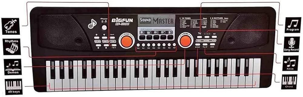 ارگ 49 کلیده کودک با 16 تُن، 8 ریتم و 6 آهنگ نمایشی، بههمراه میکروفون، ورودی MP3 و کابل USB؛ قابل استفاده با برق یا باتری.