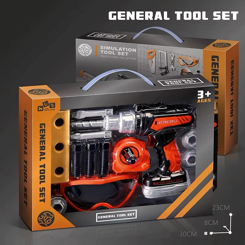 ست ابزار تعاملی کودکان شامل دریل و لوازم جانبی، مناسب کودکان بالای ۳ سال برای بازیهای نقشآفرینی و تقویت مهارتهای حرکتی و تخیلی.
