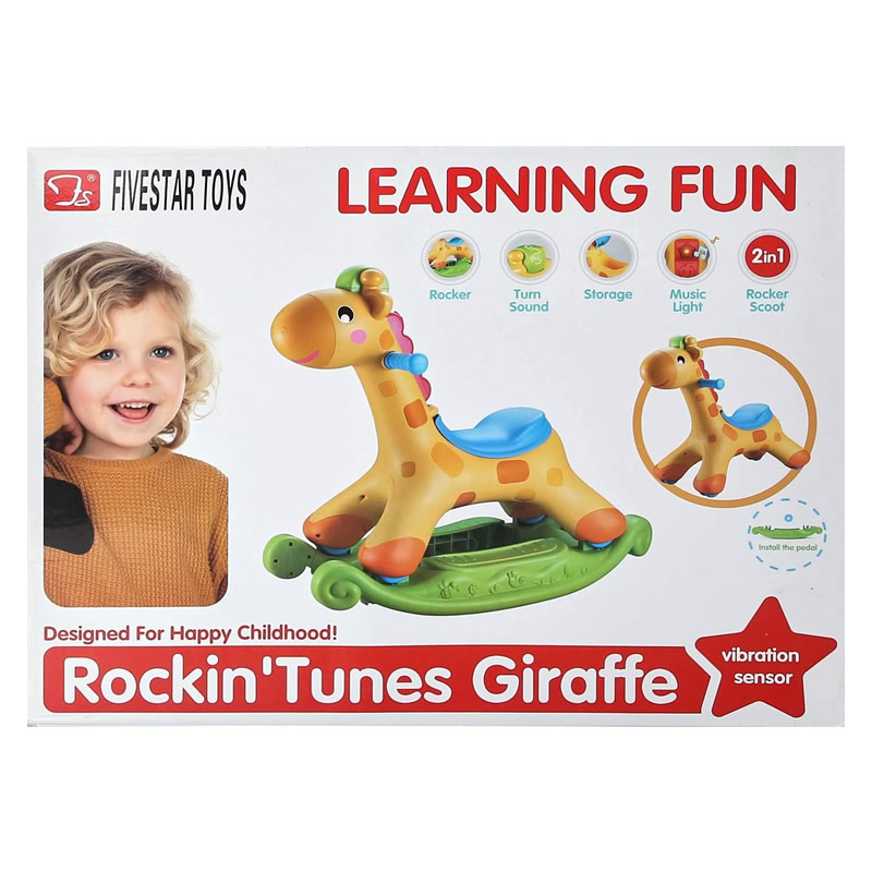 •زرافه دو کاره فایو استار با طراحی زیبا و رنگهای جذاب توجه کودکان را به خود جلب میکند و تجربه بازی را برای آنها شیرینتر میسازد.