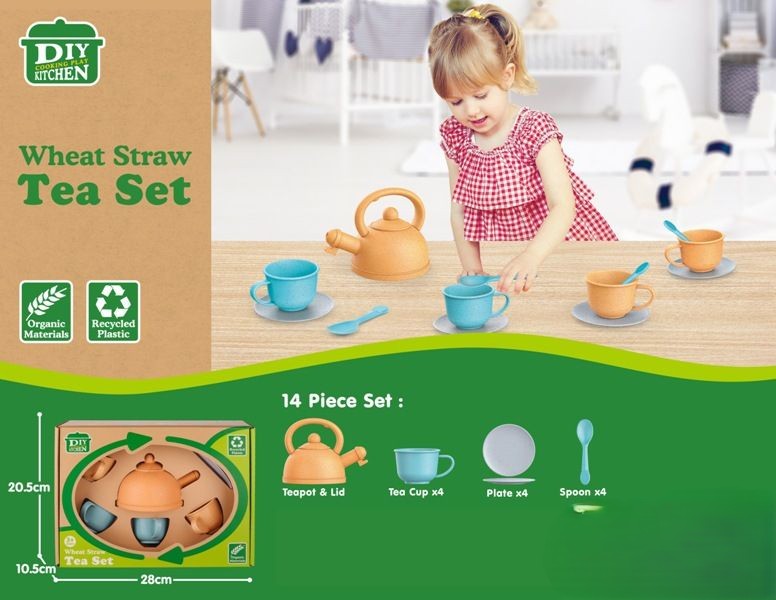 ست چایخوری ۱۷ تکه ساختهشده از پلاستیک ۱۰۰٪ بازیافتی، کاملاً ایمن، مناسب کودکان بالای ۲ سال و قابل شستشو در ماشین ظرفشویی.