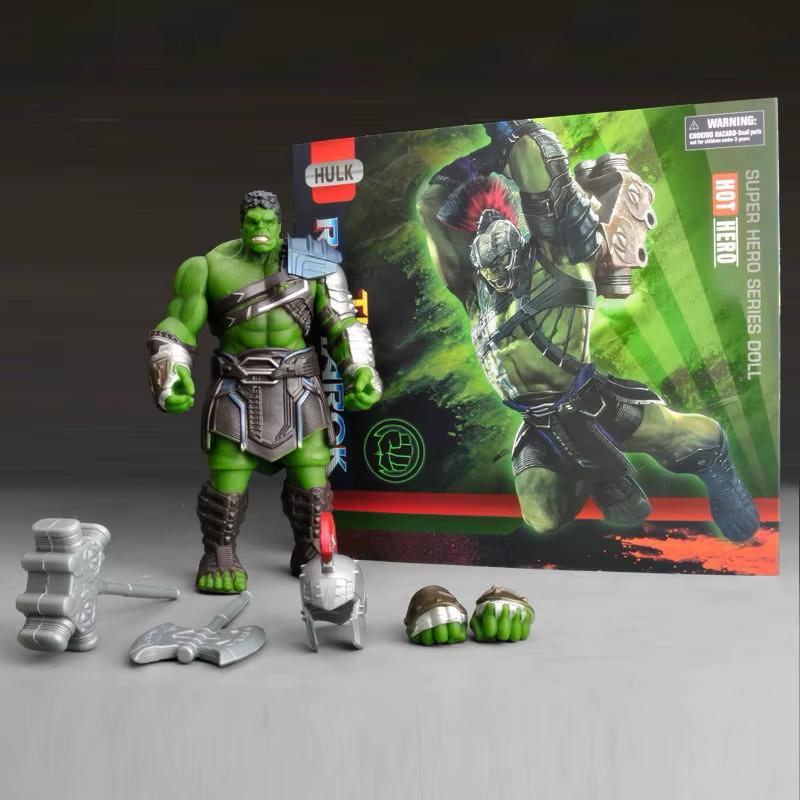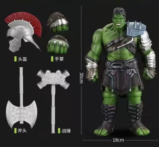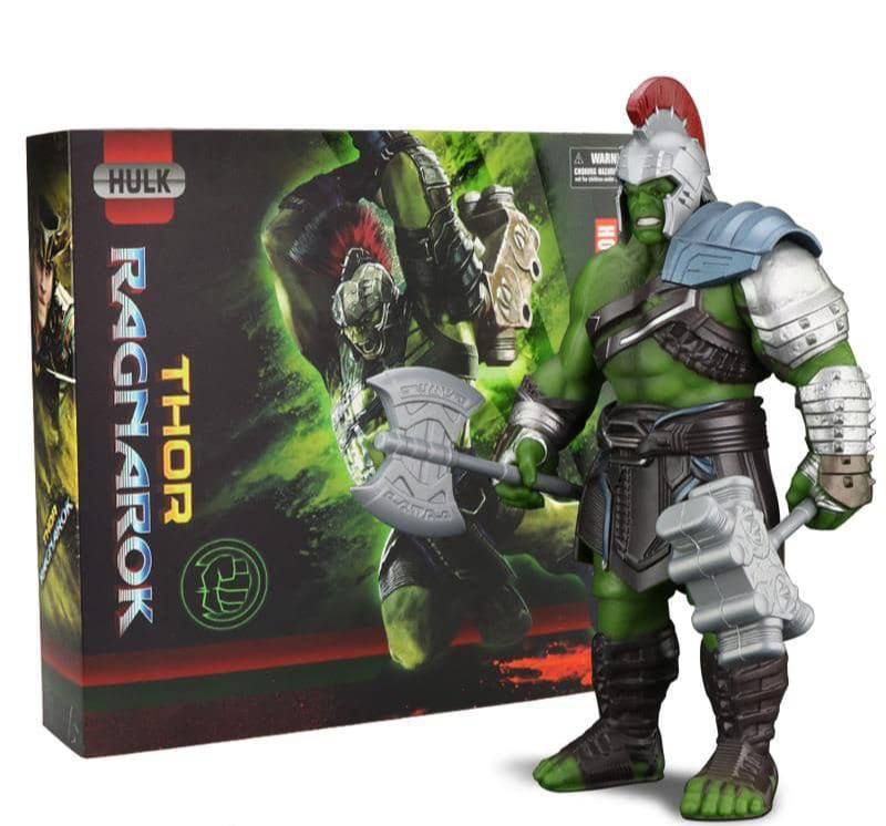 اکشن فیگور هالک گلادیاتور با ارتفاع ۳۰ سانتیمتر، دارای تبر، چکش، کلاهخود و دستهای قابل تعویض، مناسب برای کلکسیون و هدیه.