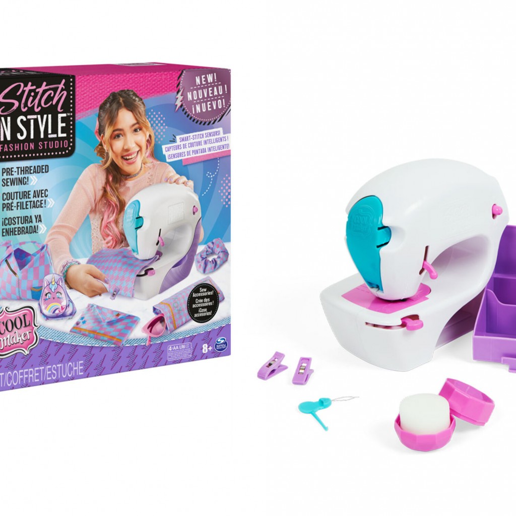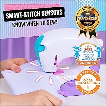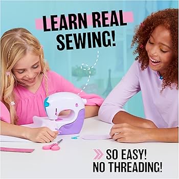 چرخ خیاطی کودکانه با نخ از پیش نصبشده و سنسور ایمنی، همراه با پارچه و لوازم جانبی برای آموزش دوخت و ساخت وسایل فانتزی.